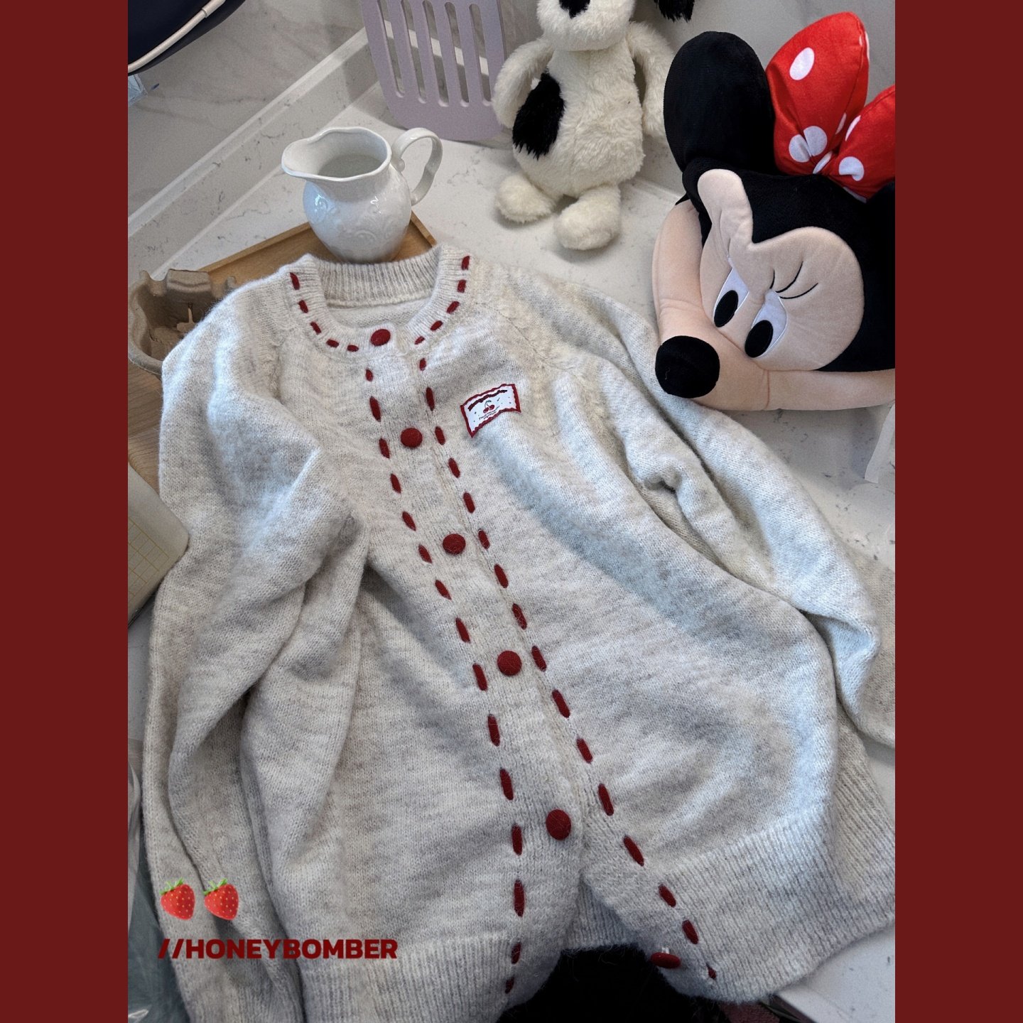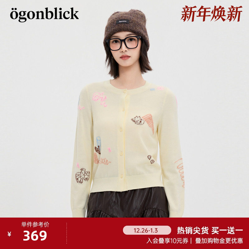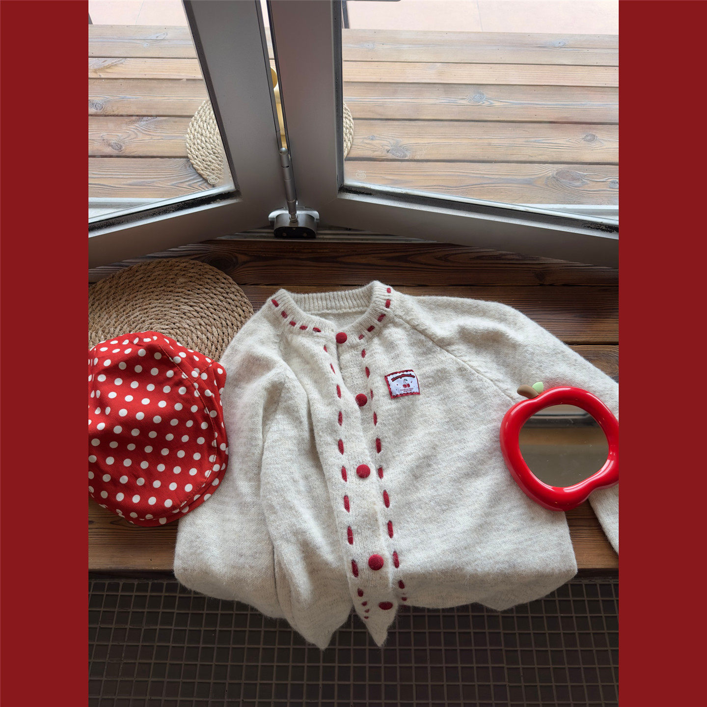 商场同款北欧时刻萌趣涂鸦刺绣杏色毛衣女25秋冬新款针织开衫外套