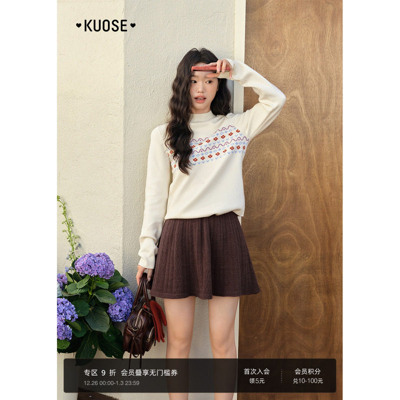 龙妹家杏色毛衣女打底衫可外穿内搭2025秋冬新款慵懒刺绣针织上衣