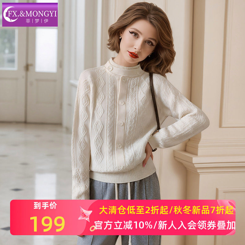 wana try温柔感费尔岛开衫毛衣2025冬季新品米杏色百搭时髦上衣女