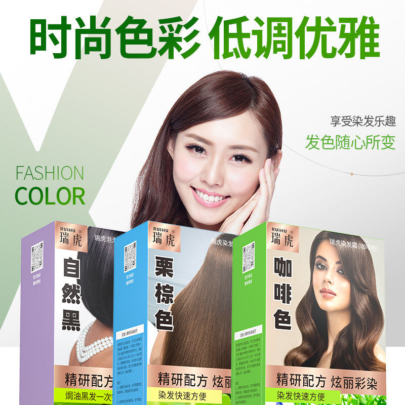 买二送一瑞虎一洗彩色染发剂流行色植物纯自己在家染发膏男女正品
