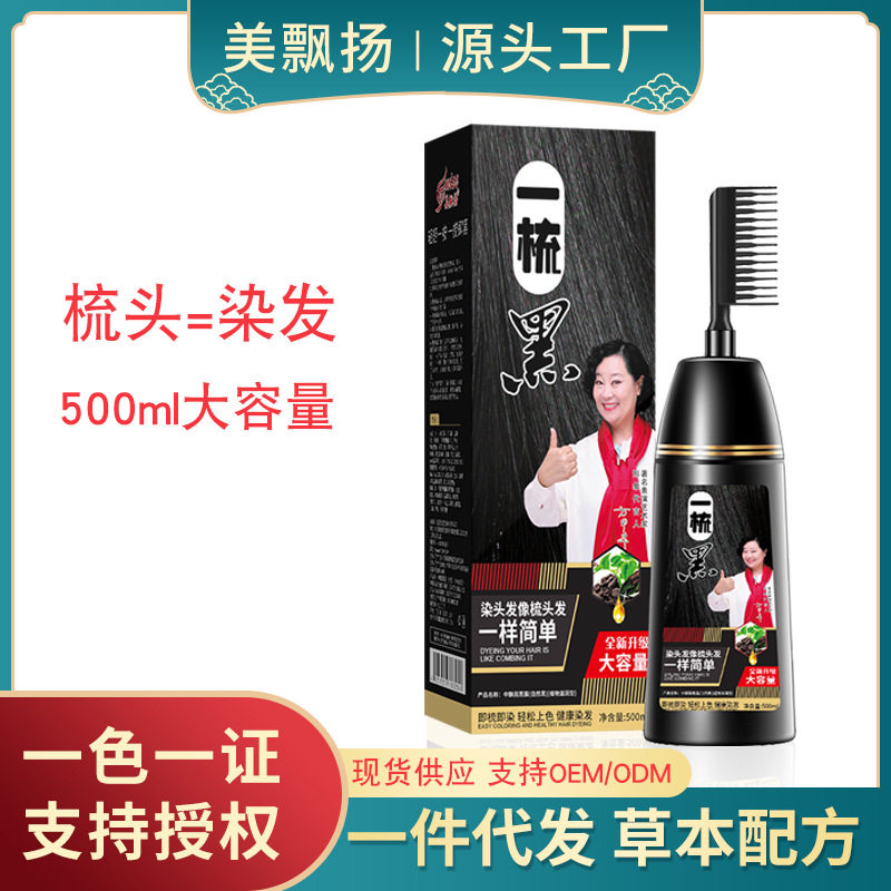 美飘扬植萃一梳黑染发剂自己在家染发梳易梳彩2025彩色染发剂