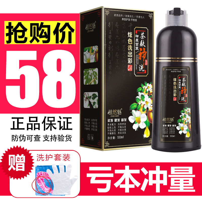 盖白发彩色染发剂一洗彩网红植物洗发水自己在家染一洗黑色染发膏