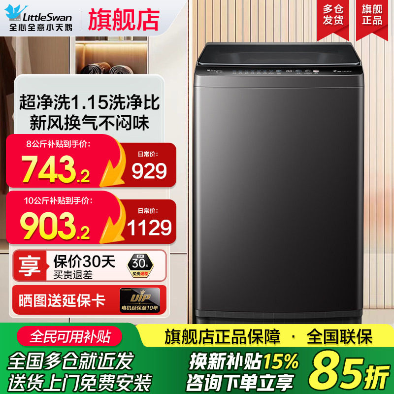 以旧换新小天鹅8/10/12kg家用小型波轮洗衣机全自动洗脱一体机