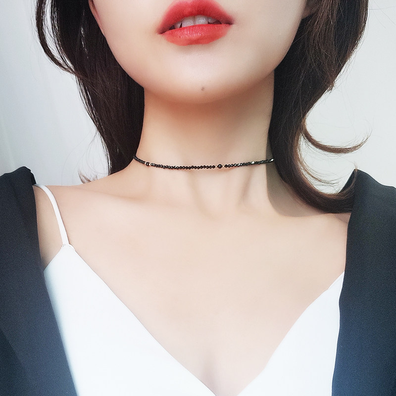 黑色暗黑系纯银锁骨链日韩黑尖晶石灰月光石14k金珠颈链项链项圈