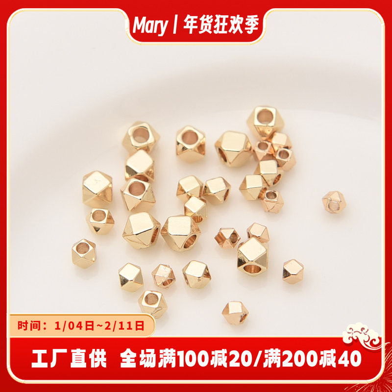 14K包金六角形金珠手工diy手串多面隔珠手链项链配珠材料散珠配件