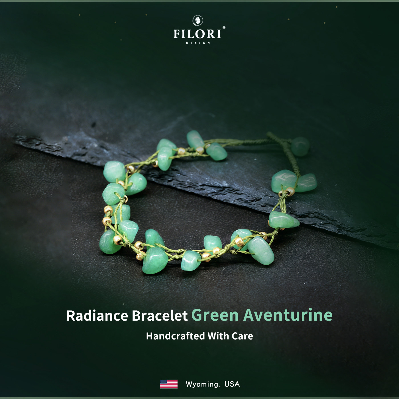 FILORI菲珞天然绿东陵手链女款天然水晶手工编制14K金珠2026新品