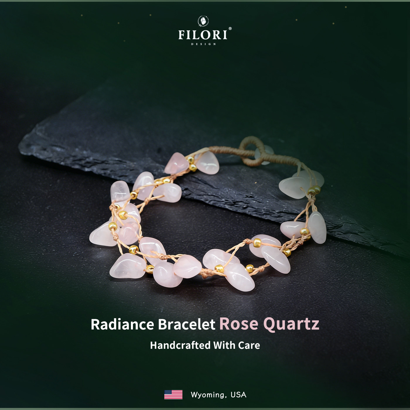FILORI菲珞天然粉水晶手链女款天然水晶手工编制14K金珠2026新品