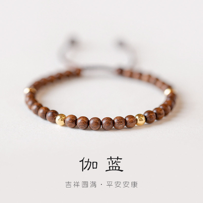 巴度天然金丝檀木14K金珠手链手工饰品小众礼物招财转运珠女复古