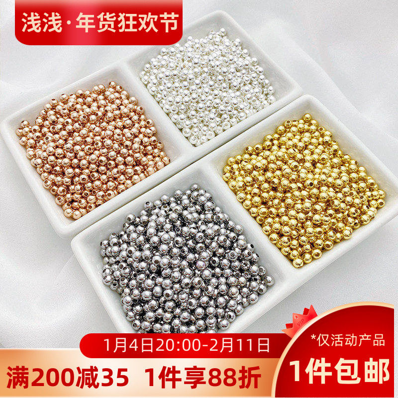 100颗价14K包金保色金珠散珠银珠圆珠子隔珠diy串珠手链项链配件