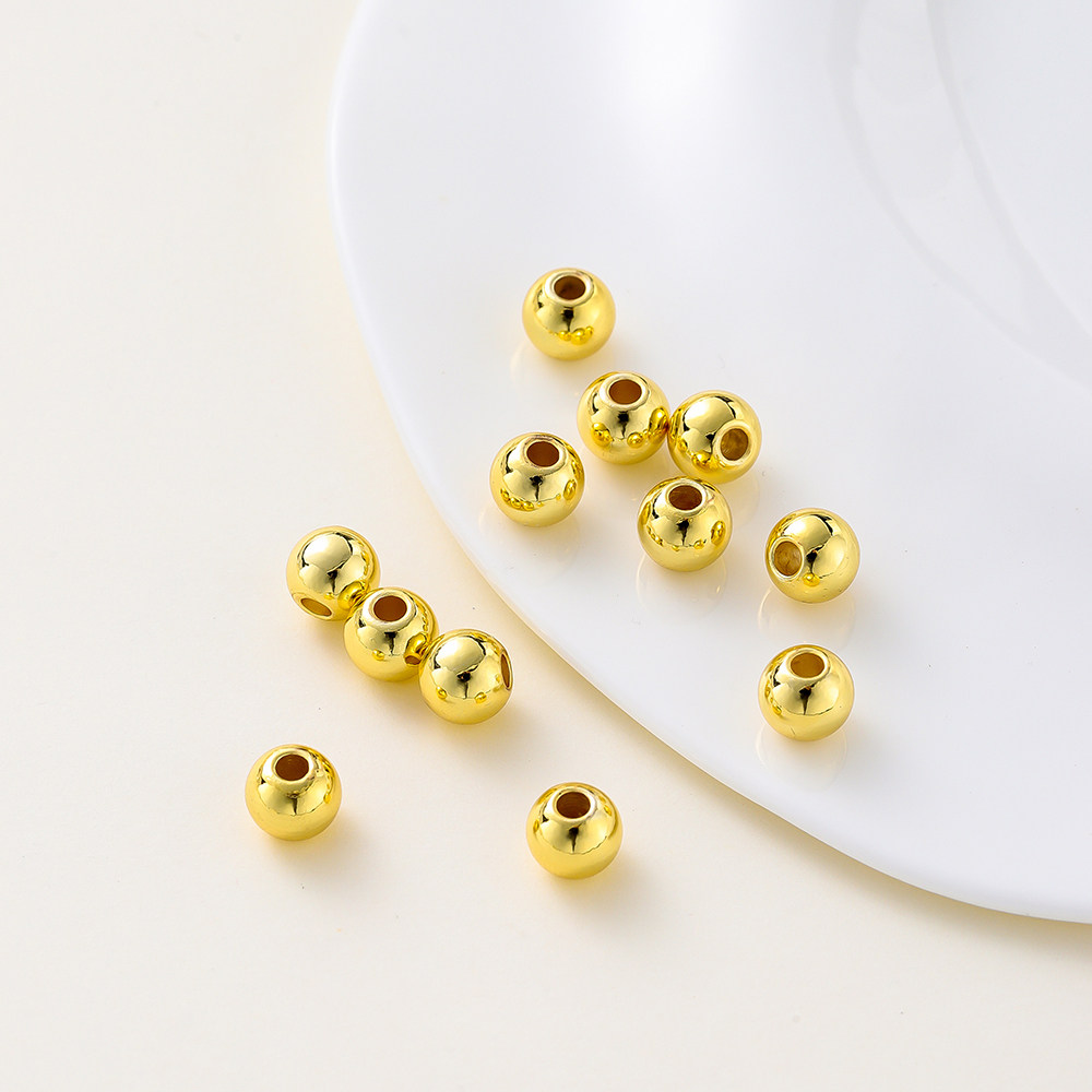 镀18k金铜珠散珠diy配件手链手串铜珠子14K金色小金珠隔珠材料