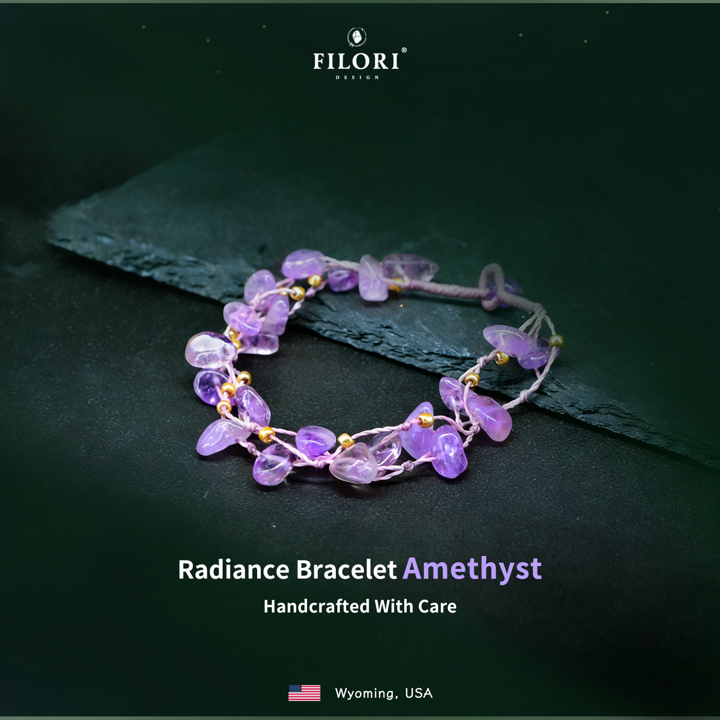 FILORI菲珞天然紫水晶手链女款天然水晶手工编制14K金珠2026新品