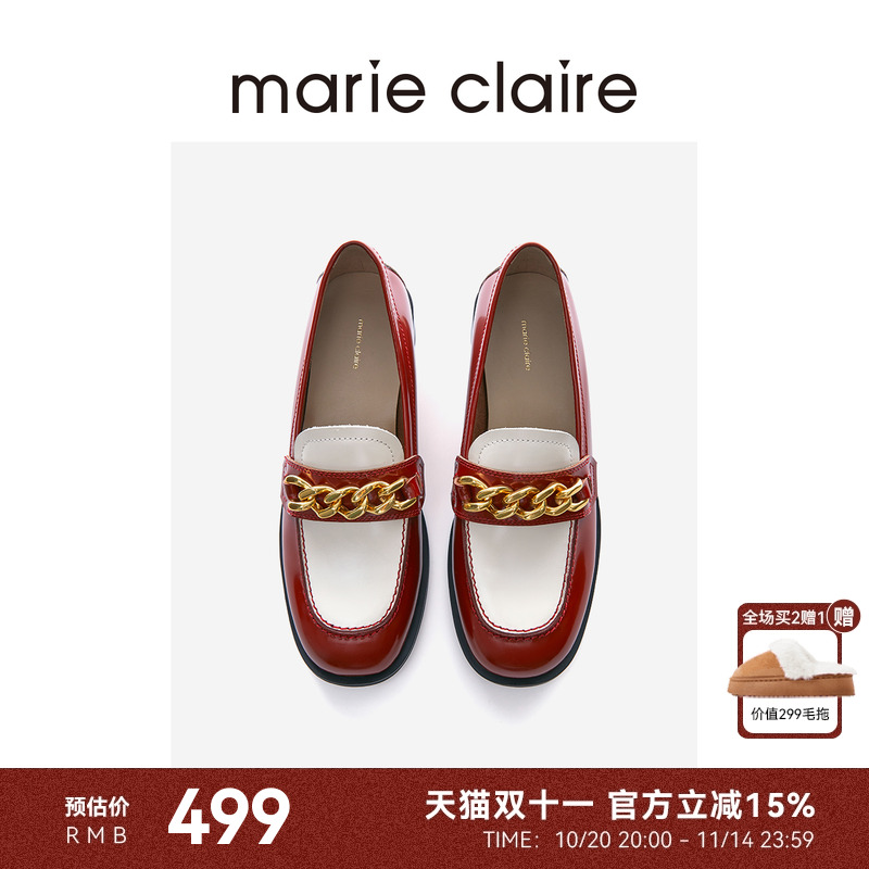 MC女鞋/marieclaire新款红色低跟乐福鞋拼色单鞋女
