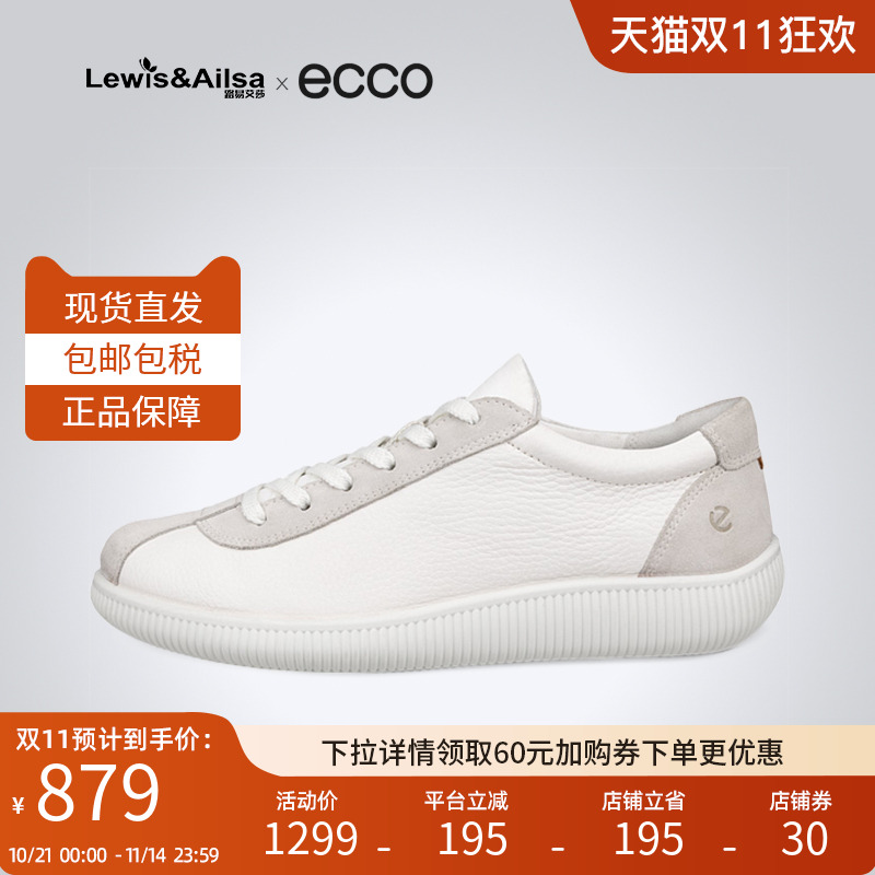 Ecco爱步女鞋2025秋季新款轻盈耐磨牛皮休闲板鞋拼色单鞋220253