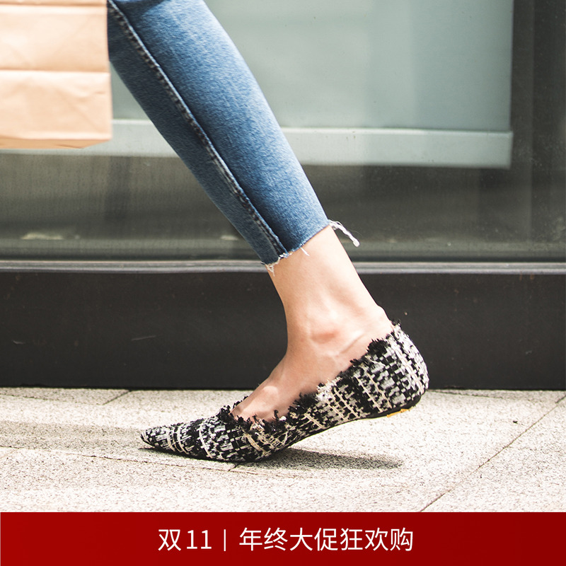 【清仓合集】王玎设计女鞋小香风浅口平底鞋女拼色圆头单鞋女百搭