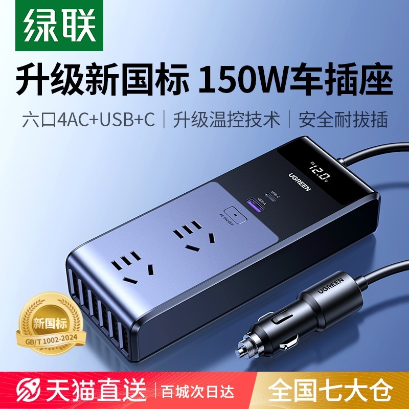绿联车载逆变器转换器12V转220V点烟器汽车充电器大功率电源插座