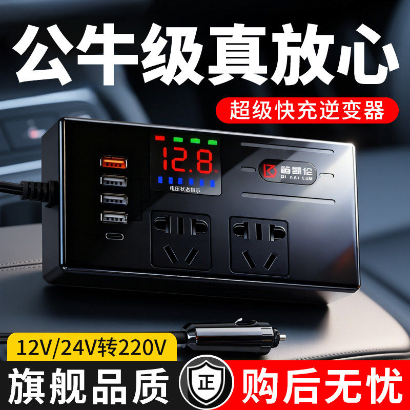 车载逆变器一拖三12V24V转220V大功率点烟器插座充电器转换快充