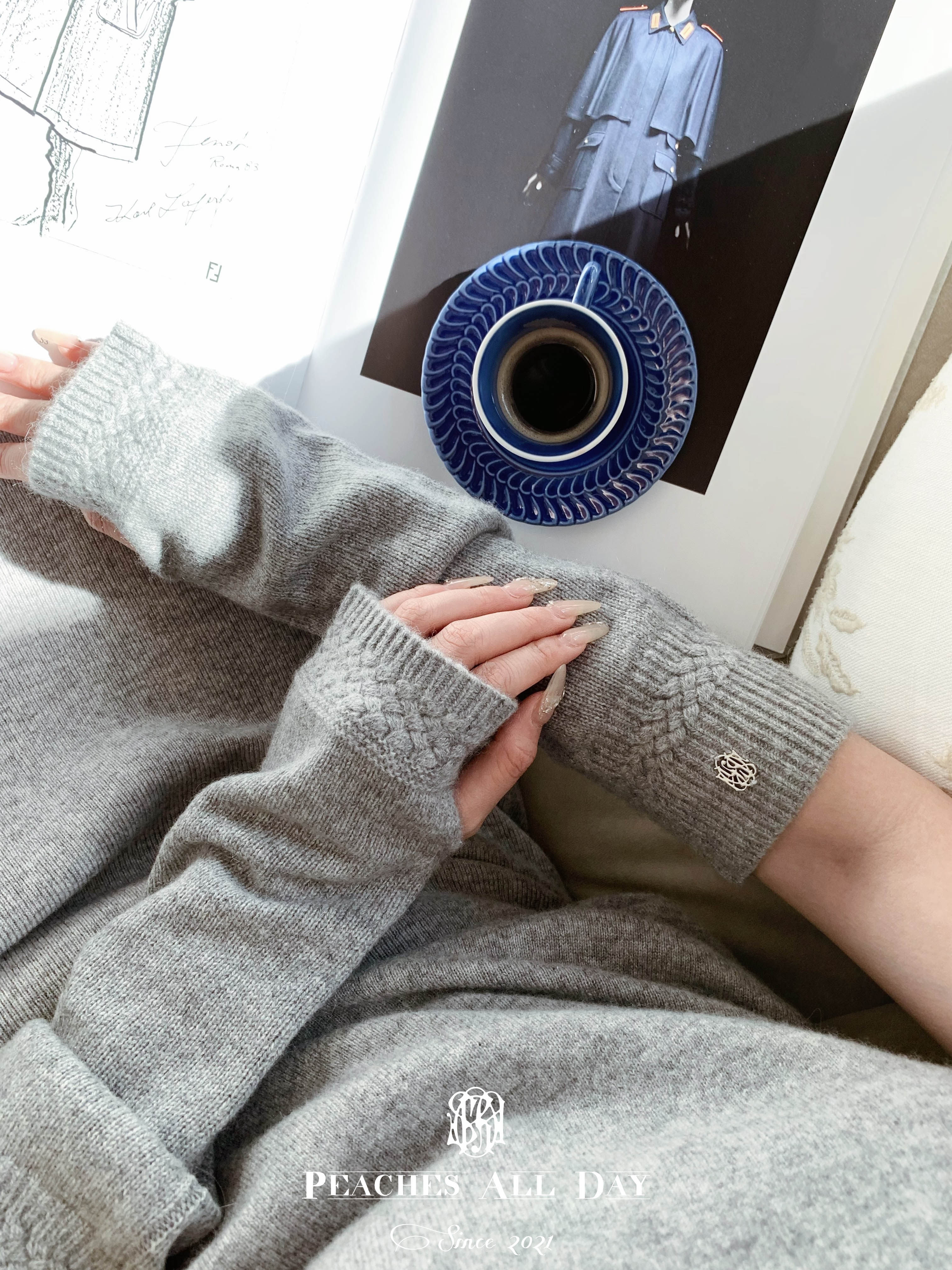 PEACHES ALL DAY羊绒玩家 LP工艺100羊绒编织灰白百搭质感袖套