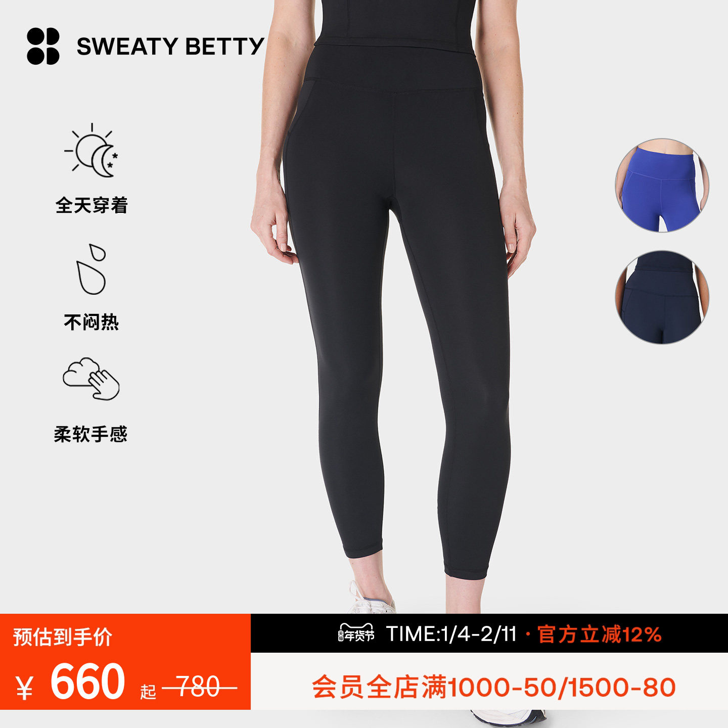 Sweaty Betty All Day轻盈柔软舒适女士高腰九分紧身裤SB1015978