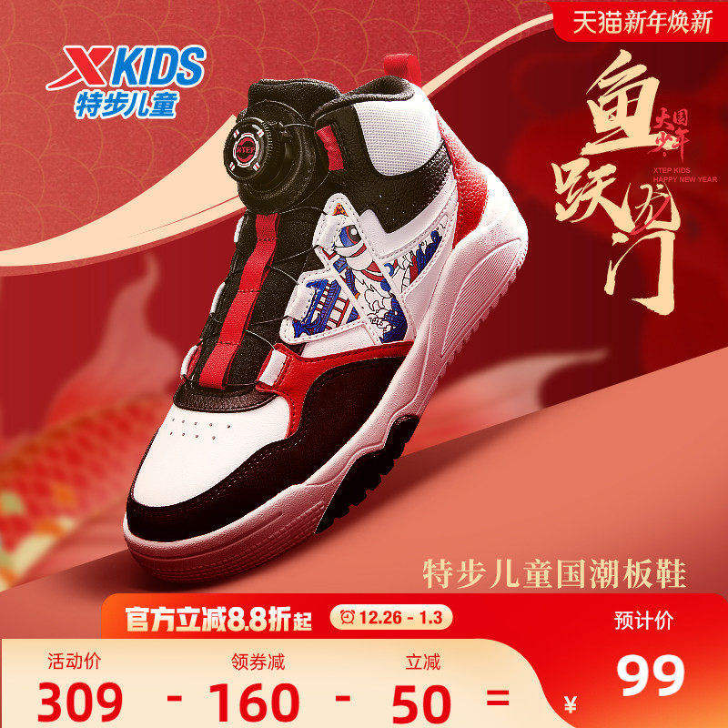 【商场同款】特步童鞋儿童板鞋2025新年款男大童旋转扣运动休闲鞋
