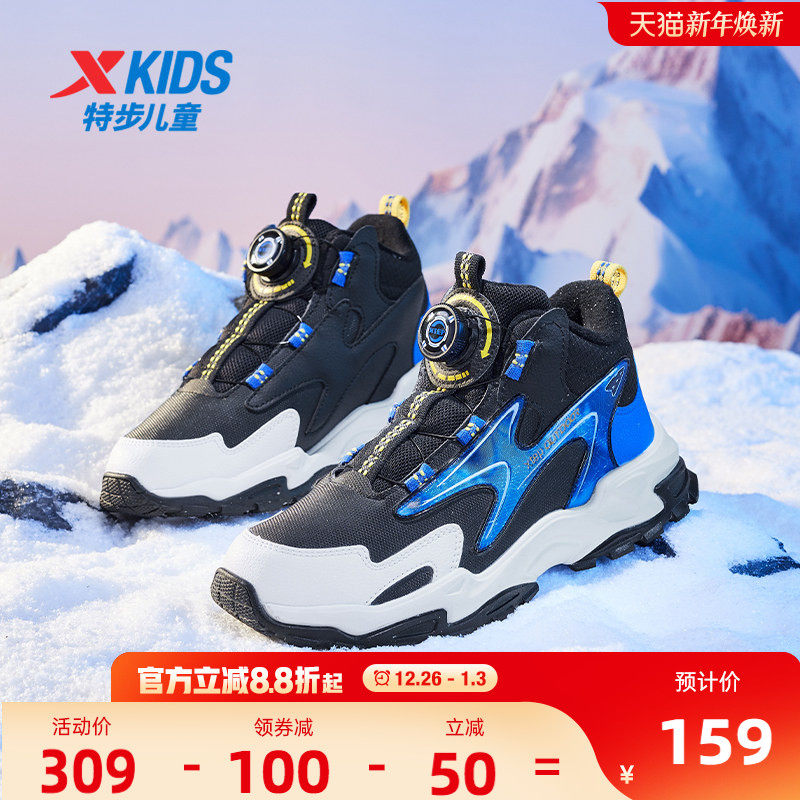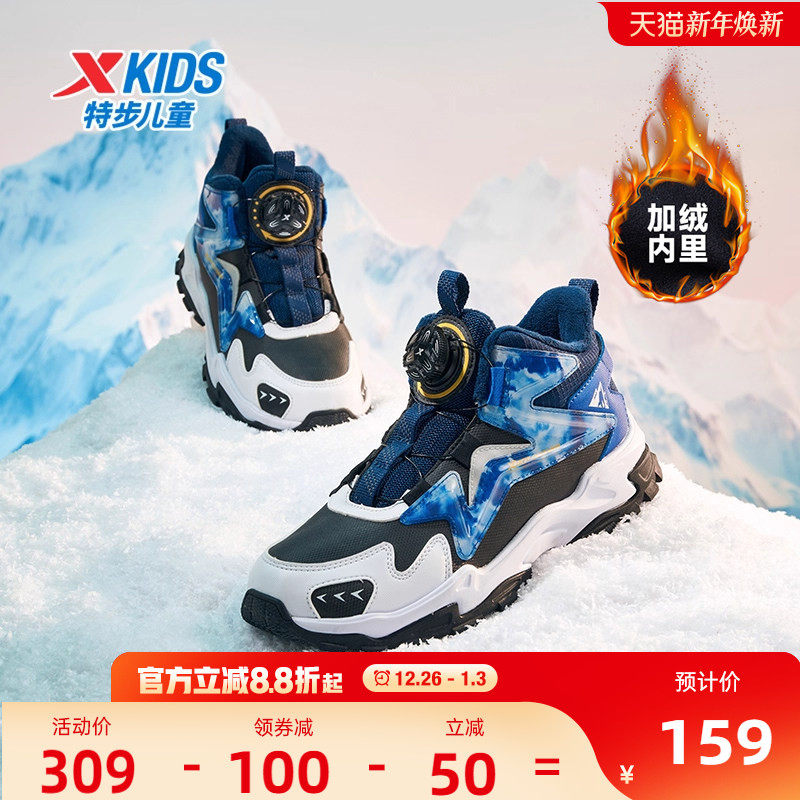 特步儿童男大童棉鞋加绒保暖二棉鞋冬季户外中大童新款保暖鞋童鞋