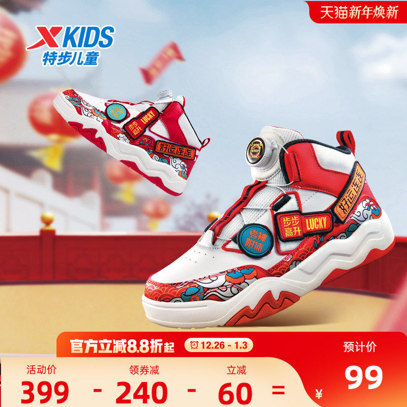 特步童鞋儿童篮球鞋旋钮扣密网男童鞋子新款耐磨球鞋运动鞋中大童