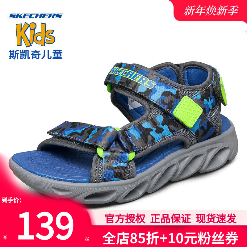 斯凯奇童鞋男童运动凉鞋秋冬新款儿童魔术贴闪灯鞋大童官方沙滩鞋