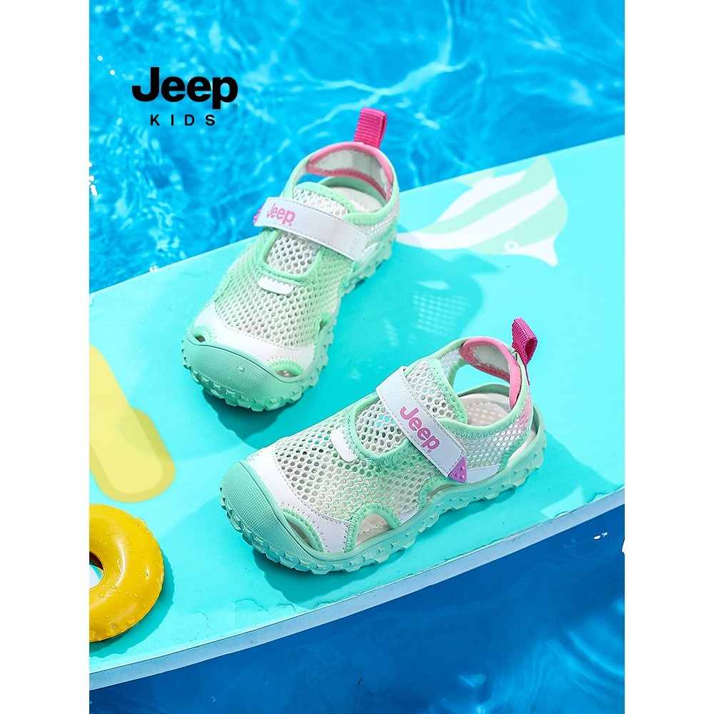 JEEP儿童中大童女童溯溪鞋2025新款软底防滑包头透气男童运动凉鞋