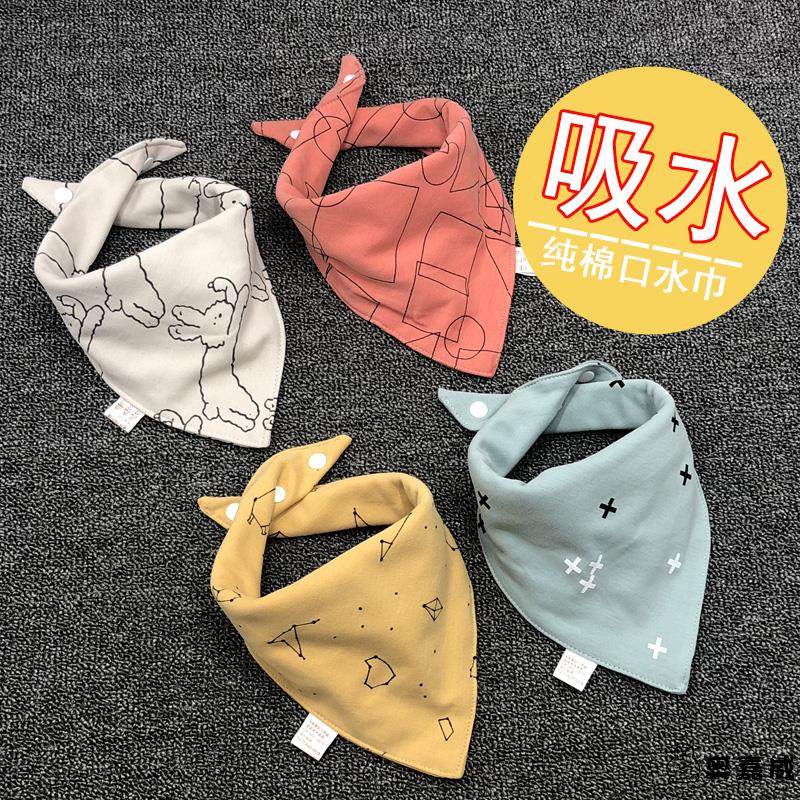 韩国婴儿口水巾纯棉纱布三角巾宝宝吃饭围兜新生儿暗扣围嘴防吐奶