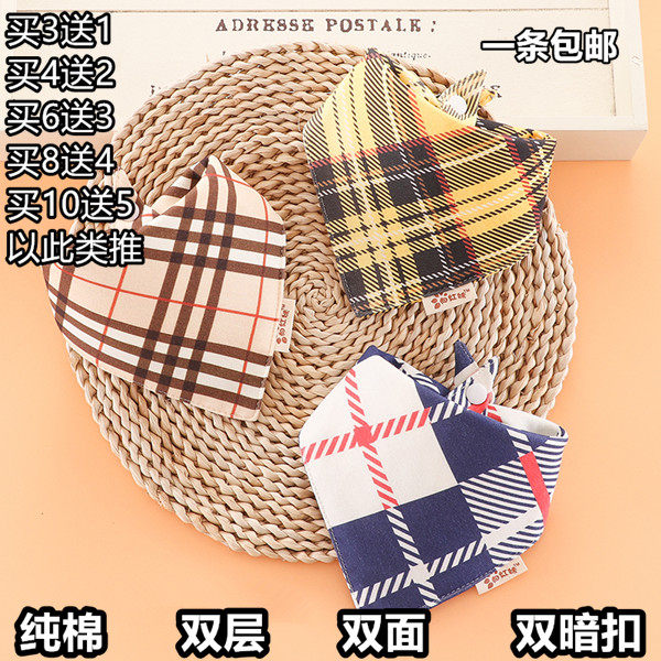 纯棉宝宝口水巾婴儿三角巾围嘴按扣双层围兜新生儿童围巾格子四季