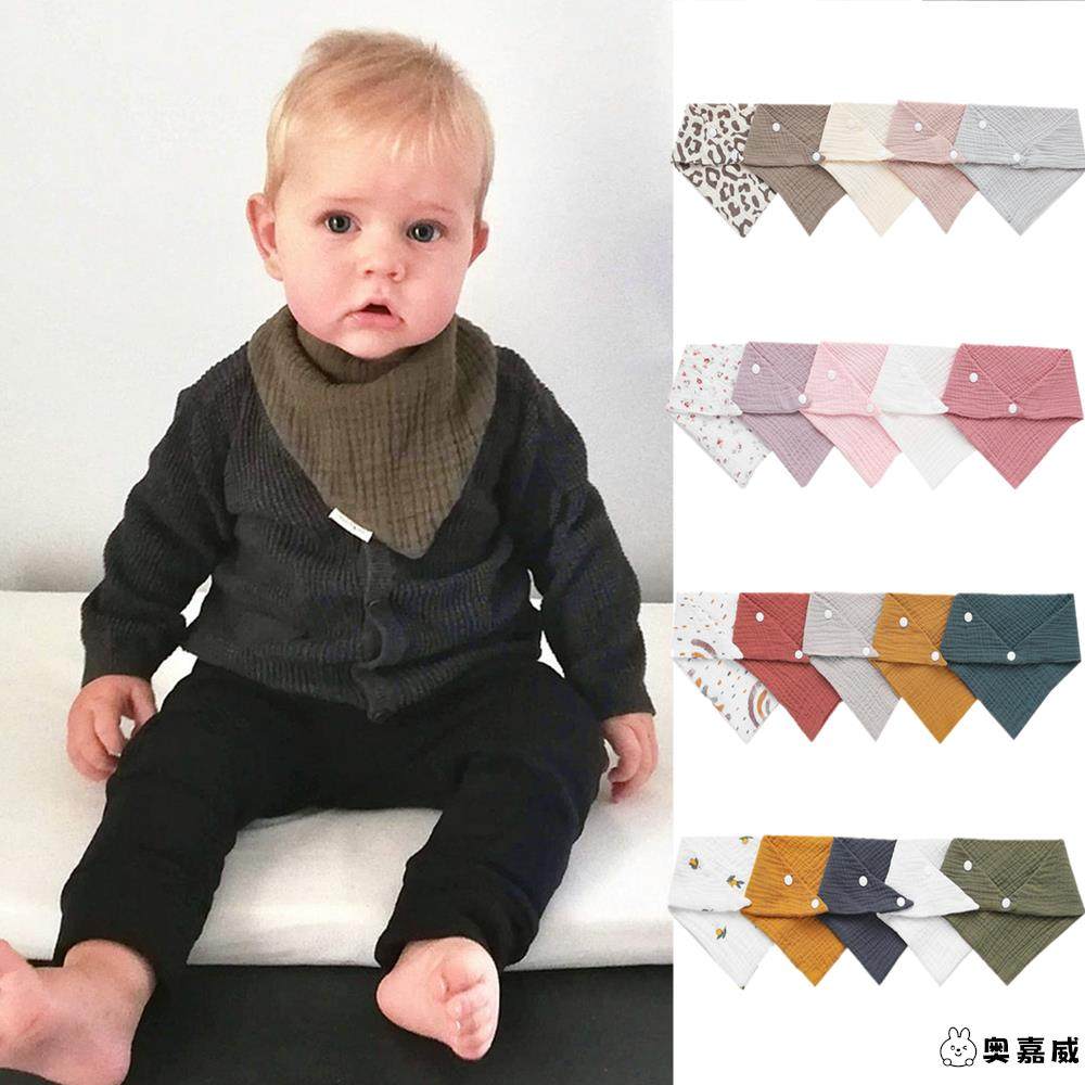 婴儿口水巾新生宝宝三角巾纯棉a类防吐奶围嘴柔软纱布按扣可调节