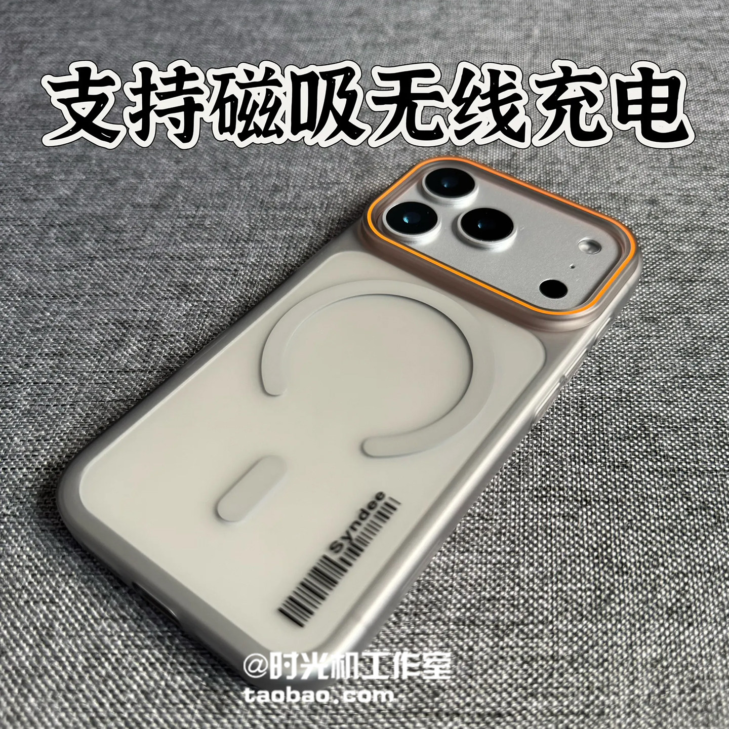 苹果17pro陶瓷白色max撞色6细圈Beats磁吸充电max适用13小米14/15pro手机壳红米K80硬壳橙色磨砂高级Magsafe