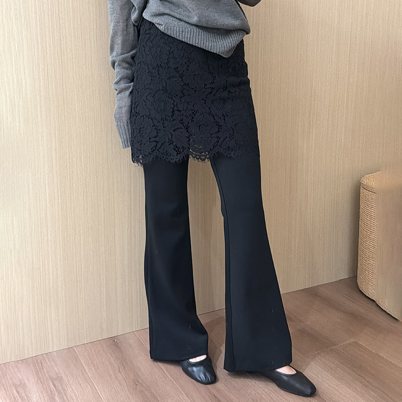 话里设计感蕾丝假两件裤子2026春季新款韩版显瘦休闲叠穿长裤女
