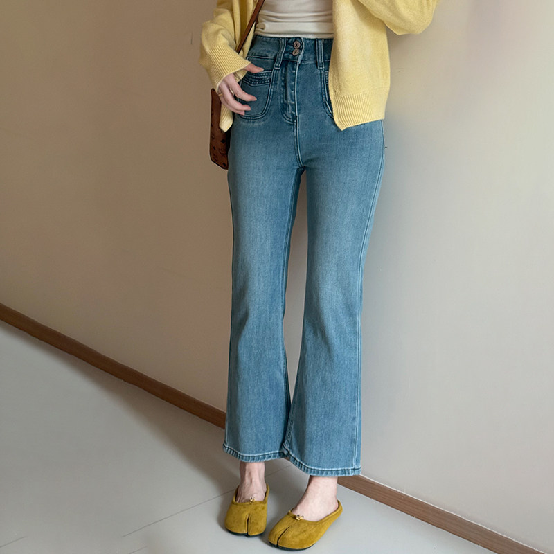 2025早春大码女装蓝色微喇牛仔裤显瘦高腰弹力胖mm韩版修身长裤女