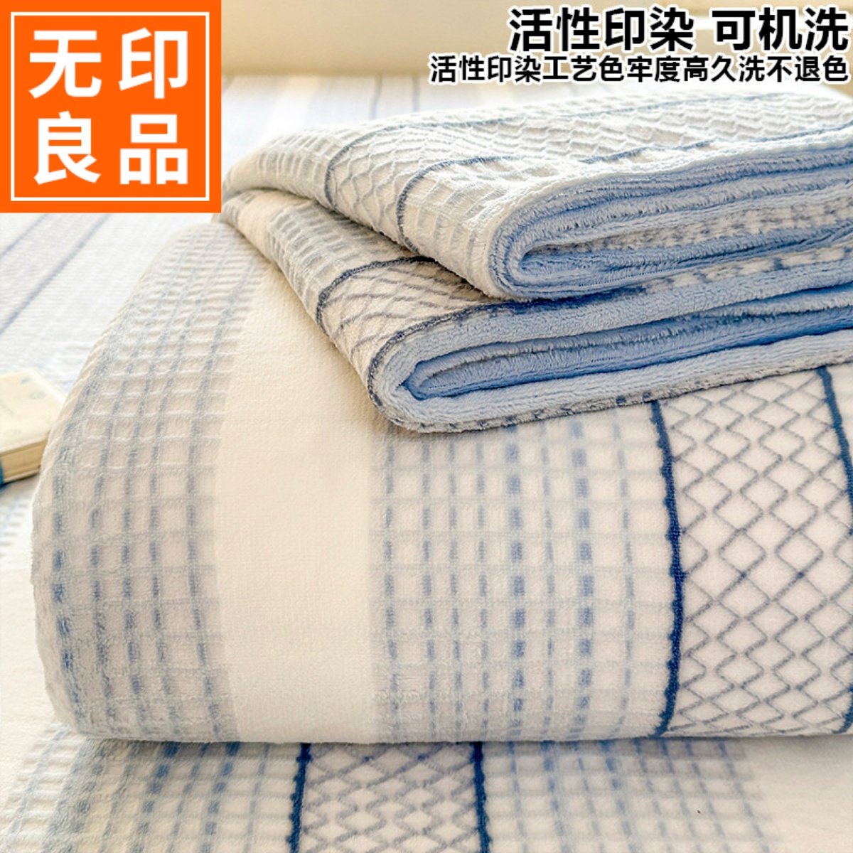 无印良品加厚牛奶绒毛毯盖毯双面绒毯子珊瑚绒床单单件单人午睡毯