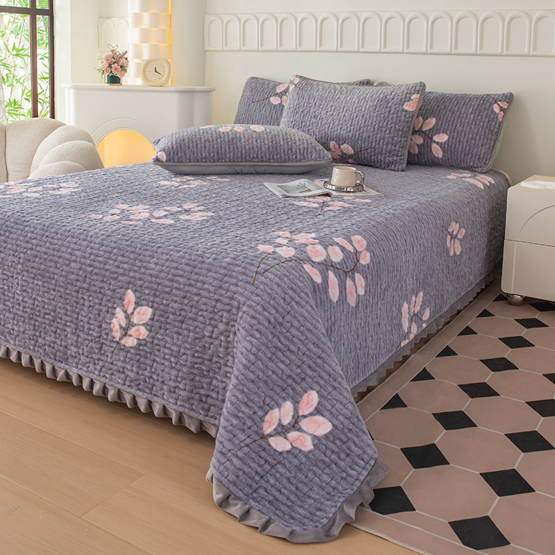 2025新款牛奶绒夹棉床盖三件套加厚榻榻米四季通用珊瑚绒床单单件