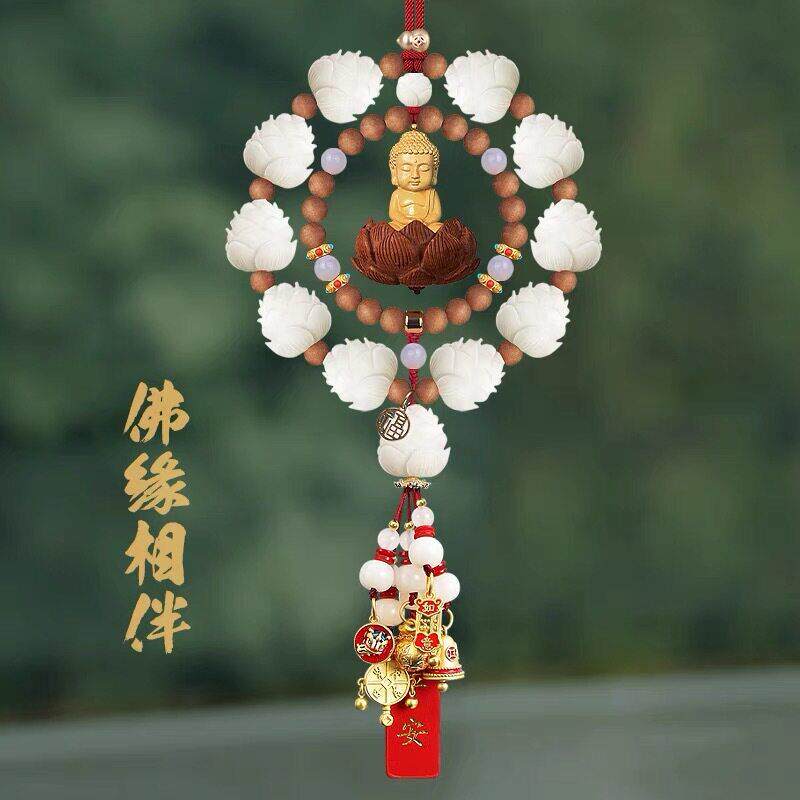 菩提子莲花汽车挂件车内吊饰高档平安黄杨木小佛像车载后照镜吊坠
