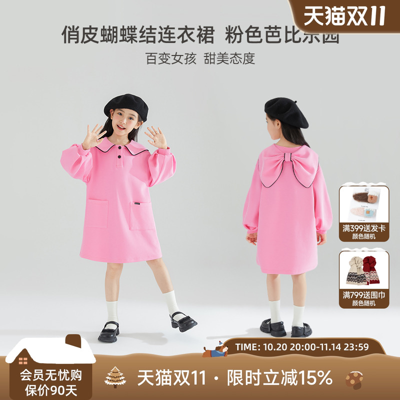 女童粉色亮片蝴蝶结背心裙连衣裙2025秋冬新款女孩公主裙生日礼服