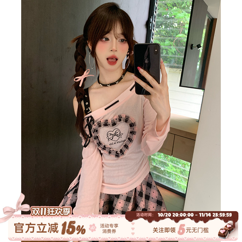 甜梨呆呆山杏甜奈 2025秋冬季新款长袖藕粉色连衣裙+内搭吊带上衣