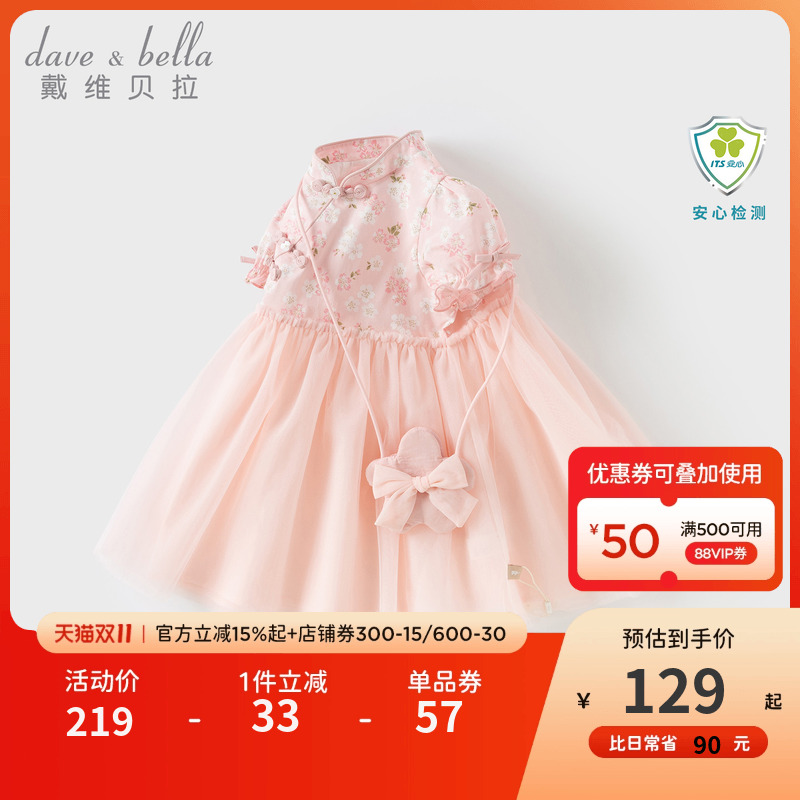 戴维贝拉儿童裙子2025夏装新款女童国风汉服连衣裙宝宝粉色公主裙