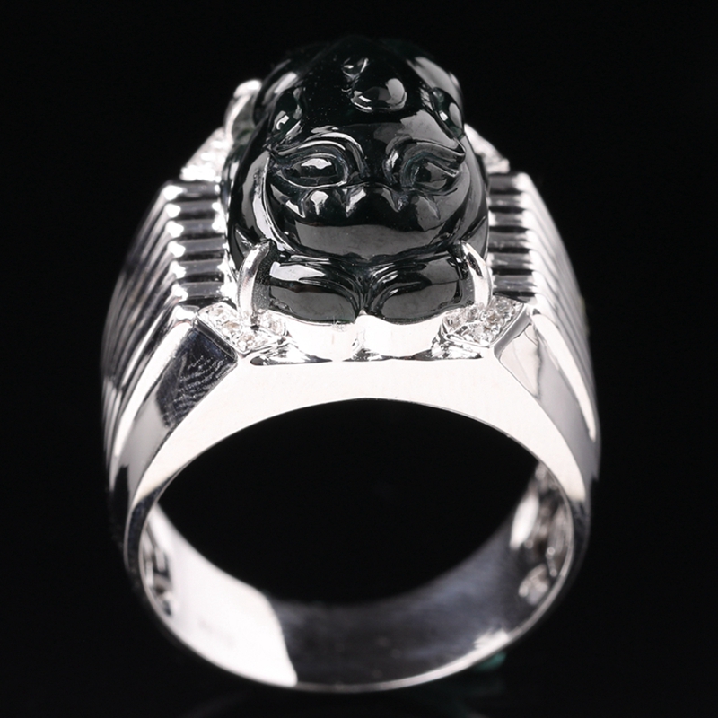 念玉珠宝18k白金镶玉戒指 和田碧玉男戒 男款镶钻指环大号带证书