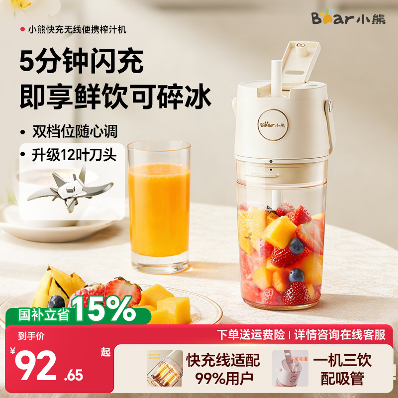 小熊榨汁机家用小型便携式水果电动榨汁杯果汁机迷你无线搅拌新款