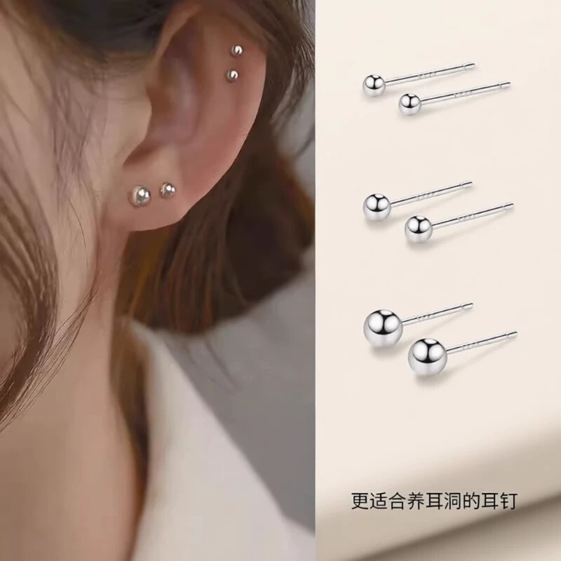 925镀银纯银耳钉养耳洞耳骨钉足银银豆豆男女学生耳环精致小巧