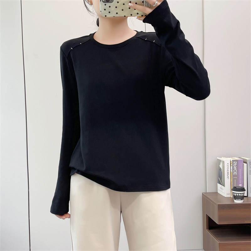 纯棉纯色长袖T恤女春秋冬新款韩版宽松大码时尚简约休闲体恤衫潮