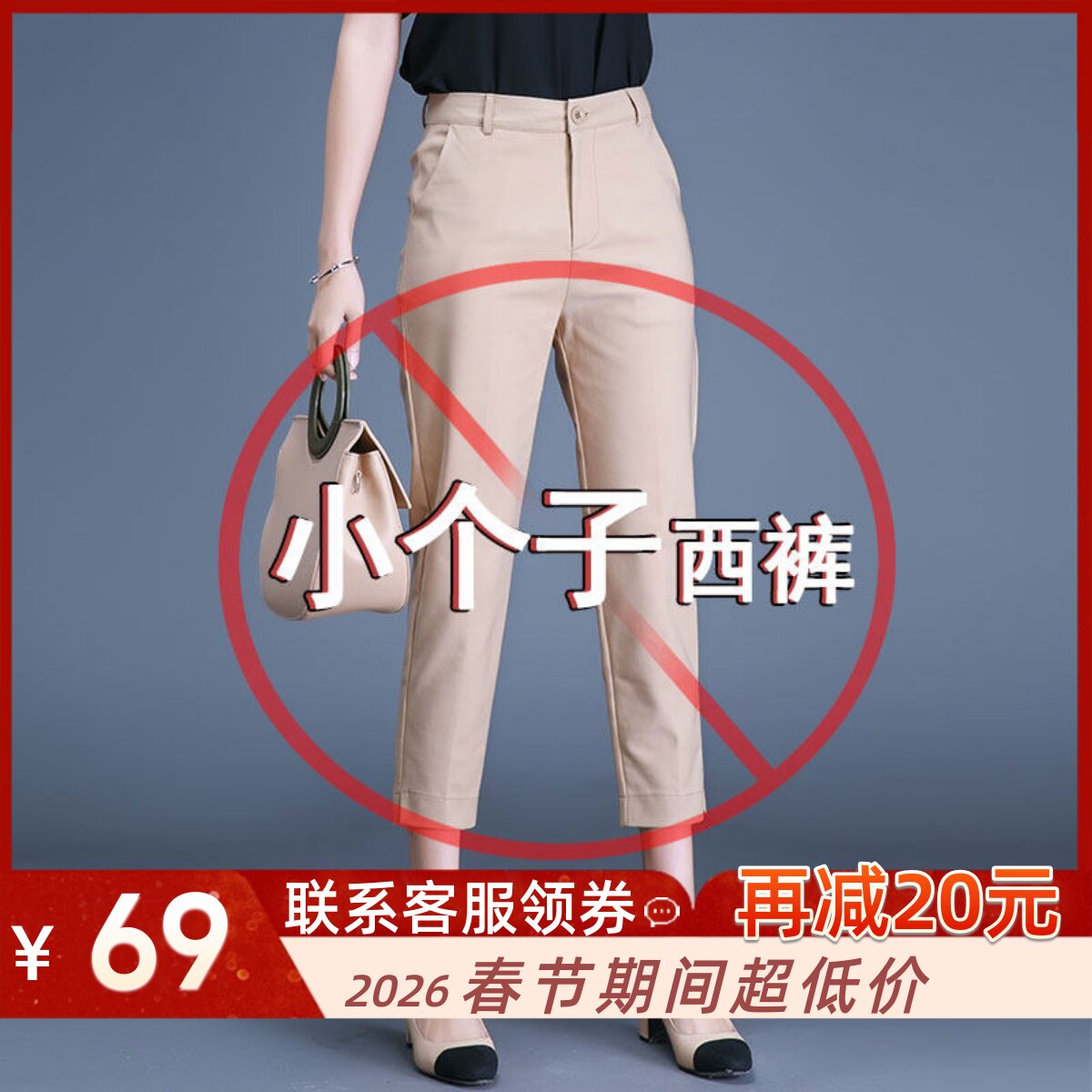 - 小脚高腰休闲西装裤女九分裤