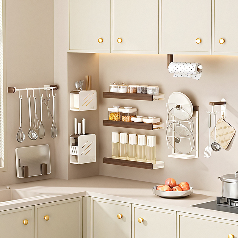 onlycook胡桃木厨房多功能置物架调料品壁挂收纳架子菜板架刀具架