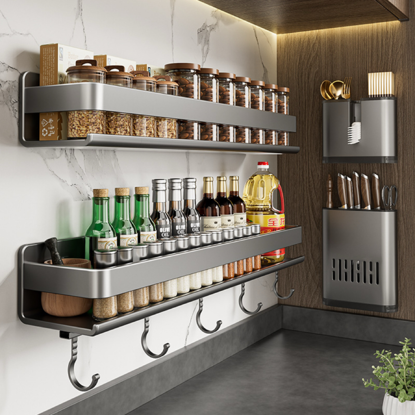 厨房多功能壁挂太空铝放调料锅铲菜板刀具架筷子筒钩子收纳置物架
