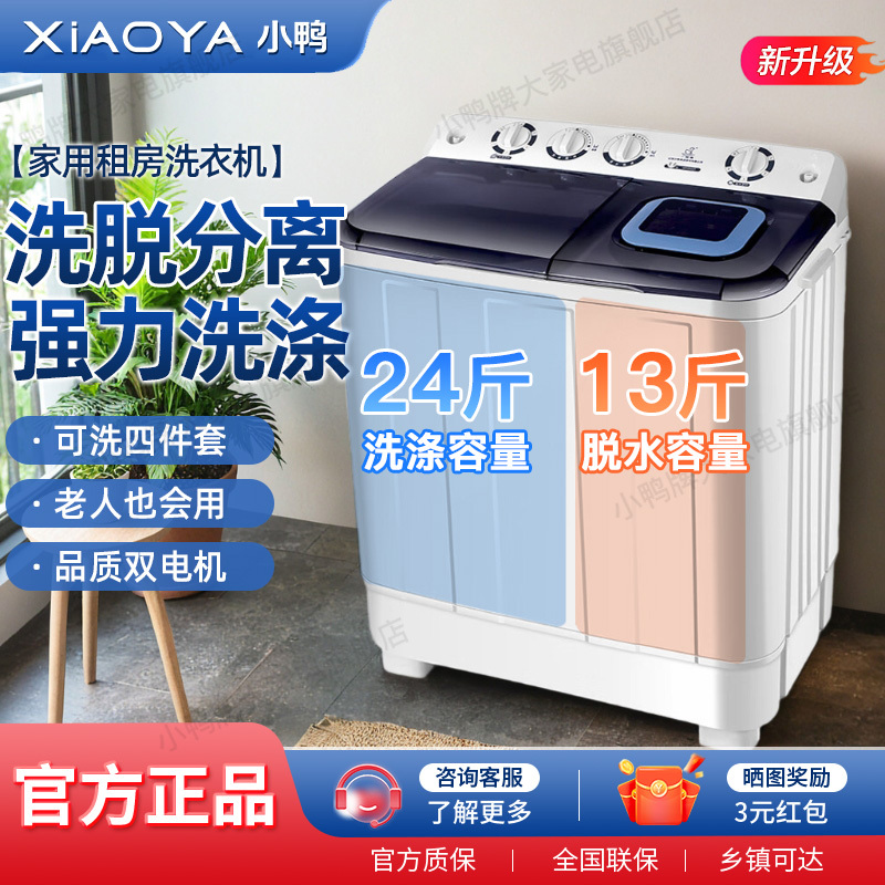 小鸭牌大容量半自动洗衣机双桶双缸洗脱一体洗衣机出租屋家用小型