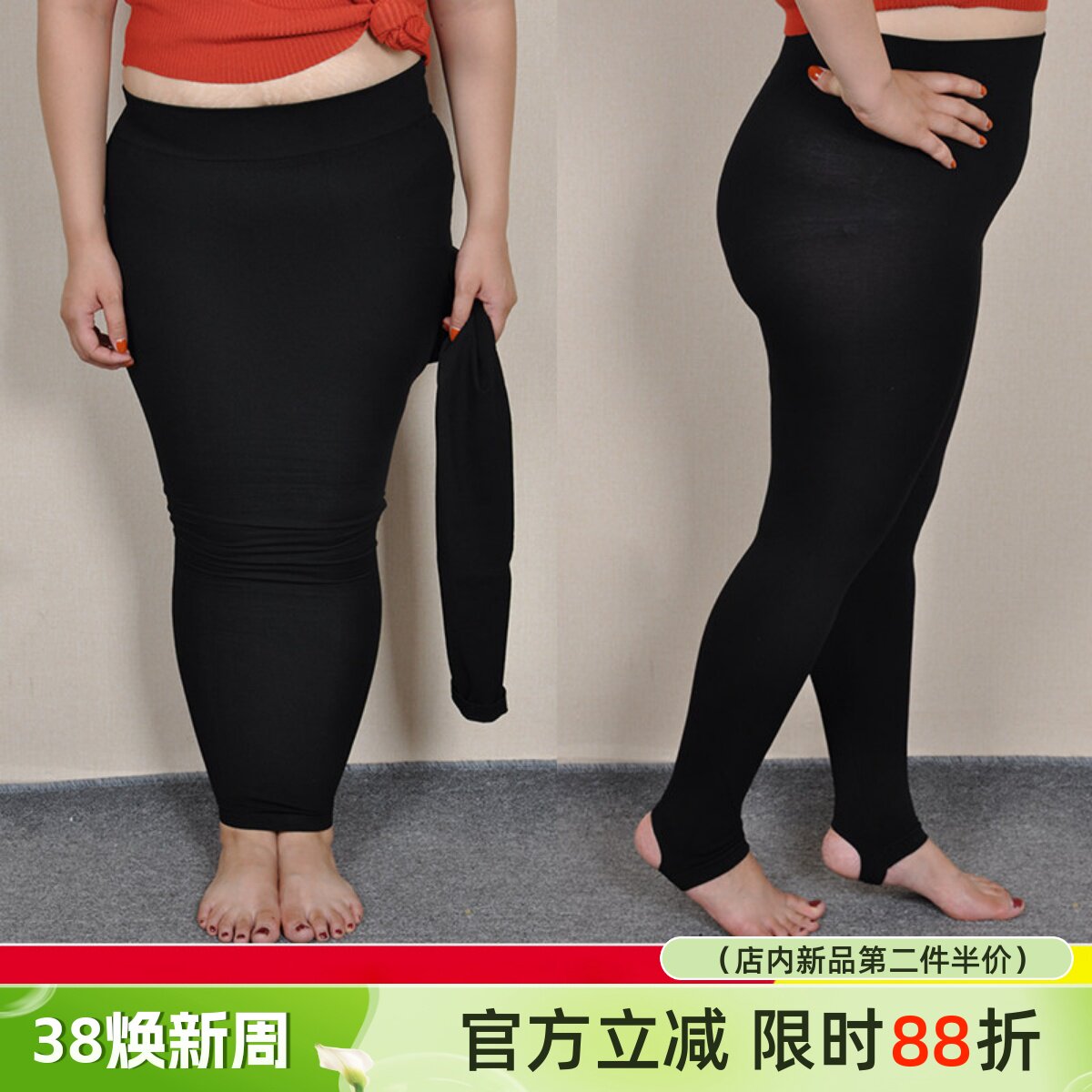 300斤大码高腰加档棉质薄绒踩脚裤 加肥胖人弹力无缝打底裤妈妈裤