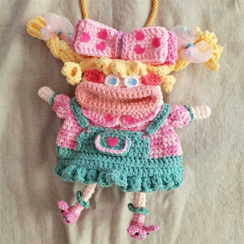 背带裙小女孩香肠嘴手机包材料包手C工diy编织钩针自制织毛线材料