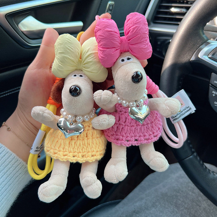 可爱毛线背带裙珍珠项链爱心毛绒小狗钥匙扣棉绳蝴蝶结卡通小公仔